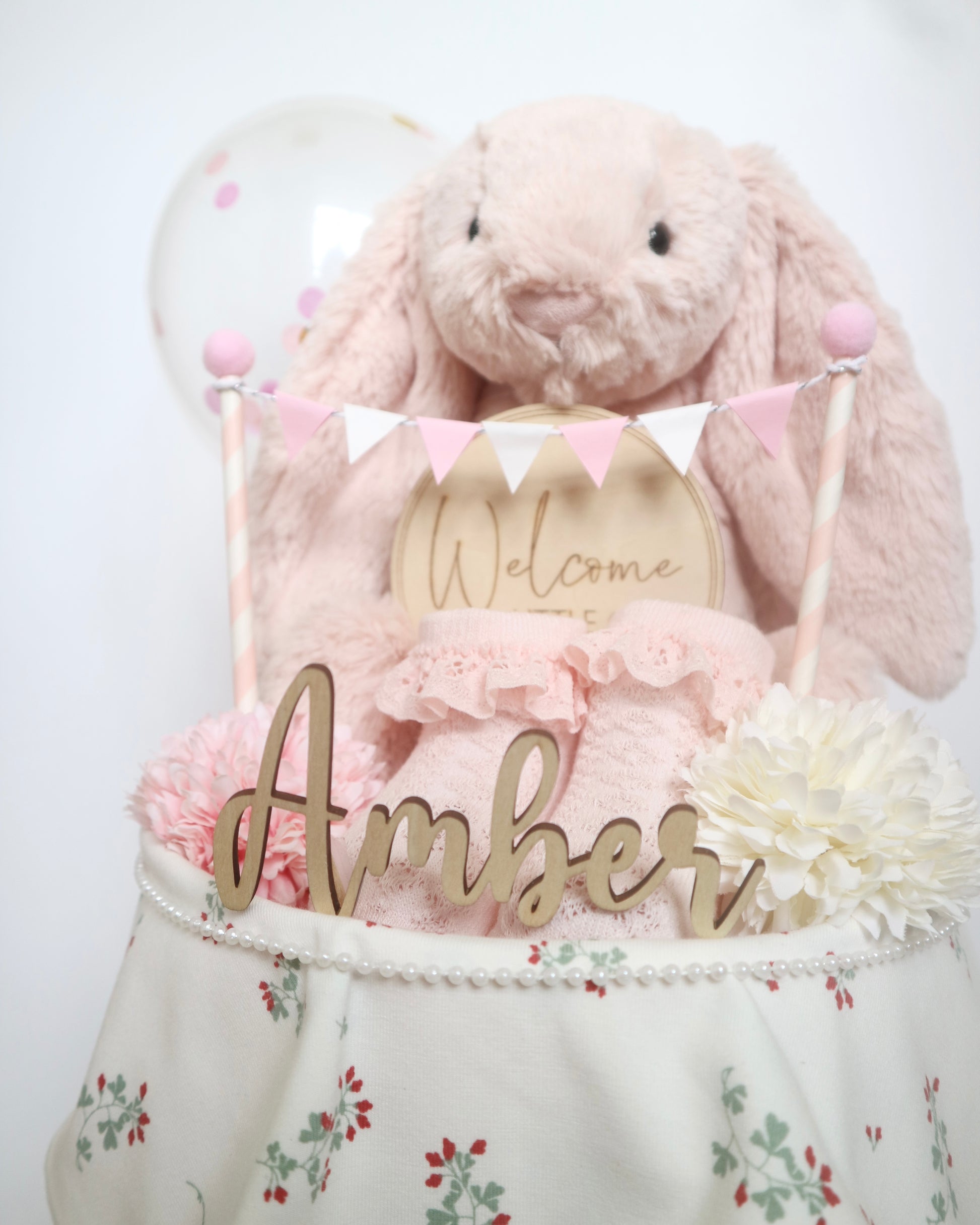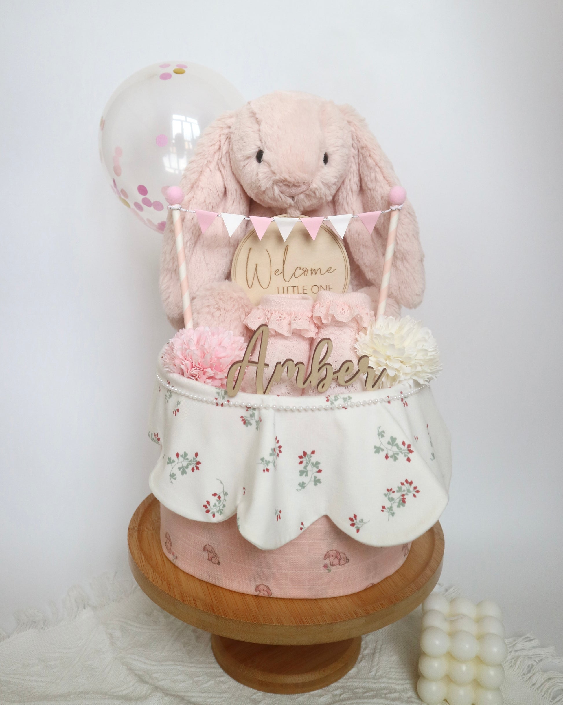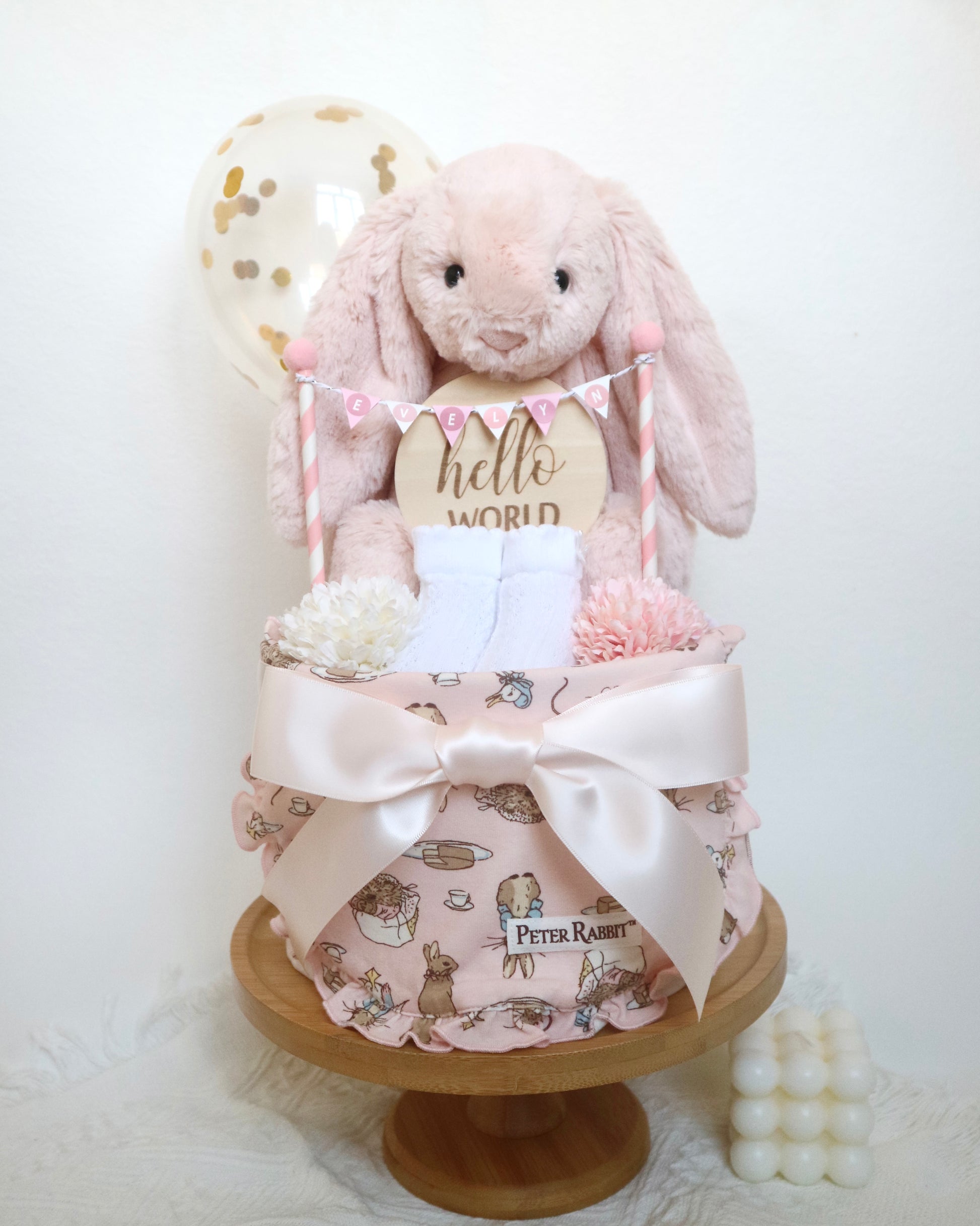 Jellycat粉紅兔仔單層尿片蛋糕 Jellycat Bashful Blush Bunny One-Tier Diaper Cake